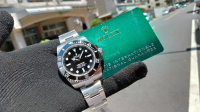 ROLEX勞力士114060無日曆黑水鬼40m 防水300m 全新珍藏.未使用過 盒單齊全.新式綠卡.只生產短短兩個月就停產. 絕對是下一次拍賣會的焦點. 絕版升值中.勞迷請勿錯過這次機會...........3個月非人為損壞保固 及議價回收