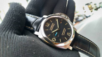 PANERAI沛納海 PAM1312 自動上鍊 .44mm.藍寶石水晶玻璃.黑色三明治面盤. 拋光精鋼.防水達300米*錶友全新珍藏(21/03)(未代.透明錶背)(3點鐘方向 龍頭拉起來即可停秒)新式同款9010機芯以無停秒功能了 絕版...未使用過 .二維碼膠膜都在. 盒單齊全.保卡全球連保8年 原廠保固內及議價回收